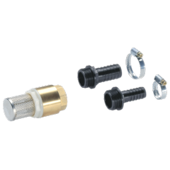 A csatlakozóelem lehetővé teszi a méteráruként vásárolható szívótömlő (cikkszám: 1721-22) vákuumálló csatlakoztatását a szivattyúhoz. Tömlőbilinccsel együtt az egyszerű rögzítéshez. A 25 mm-es (1") átmérőjű csatlakozóelem 33,3 mm-es (G 1) belső menettel rendelkezik.